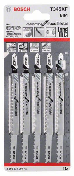 Stichsägeblatt T 345 XF Progressor for Wood and Metal, T 345 XF, BIM, geschränkt, gefräst, Bauholz mit Nägeln (<65 mm), Holzwerkstoffe, Kunststoffe, Bleche, Rohre/Profile, inkl. Alu (ø 3-10 mm)